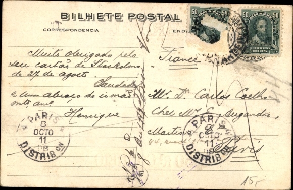 Ak Brasilien, 50 Reais Correio, Don Carlos de Portugal, Alfonso Penna