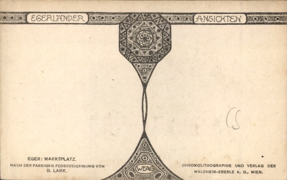 Ak Cheb Eger Region Karlsbad, Marktplatz, Gebäude, farbige Federzeichnung, B. Lark