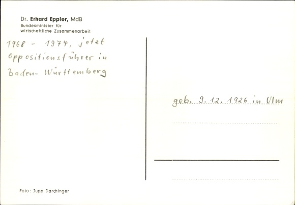 Ak Dr. Erhard Eppler, Bundesminister für wirtschaftliche Zusammenarbeit