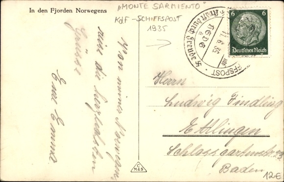 Ak Norwegen, HSDG Dampfer in einem Fjord, Monte Sarmiento