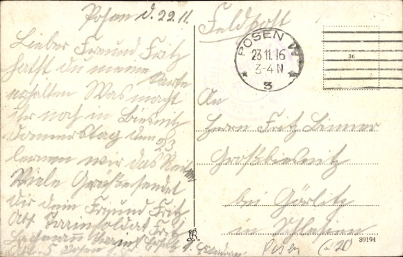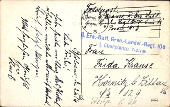 Zustand siehe Scan, gelaufen, 1917 - ca 14 cm X 9 cm