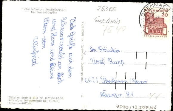 Ak Waldrennach Neuenbürg an der Enz Schwarzwald, Luftaufnahme von Felder, Häuser, Wald