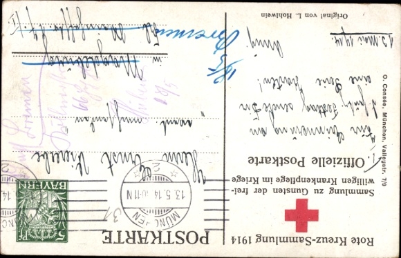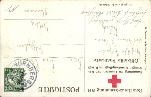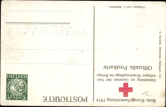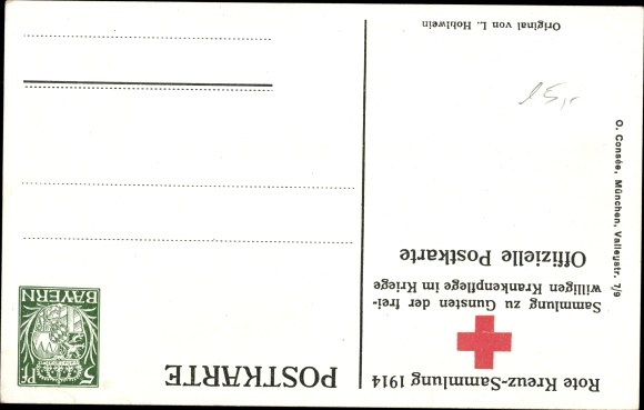 Ganzsachen Künstler Ak Hohlwein, Ludwig, Rotes Kreuz, Königreich Bayern, verwundeter Soldat