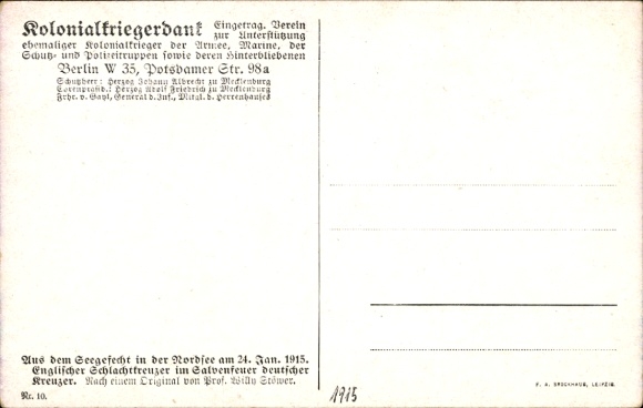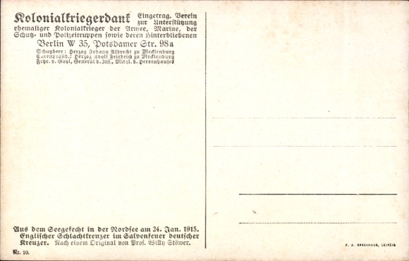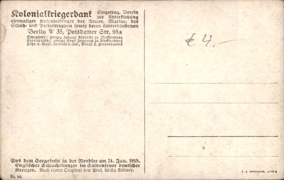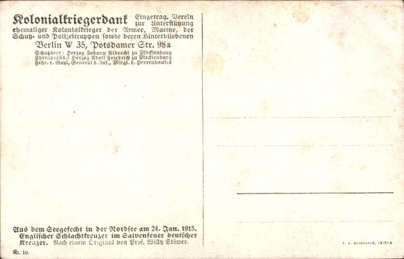 Künstler Ak Stöwer, Willy, Seegefecht in der Nordsee, Englischer Schlachtkreuzer, 1915