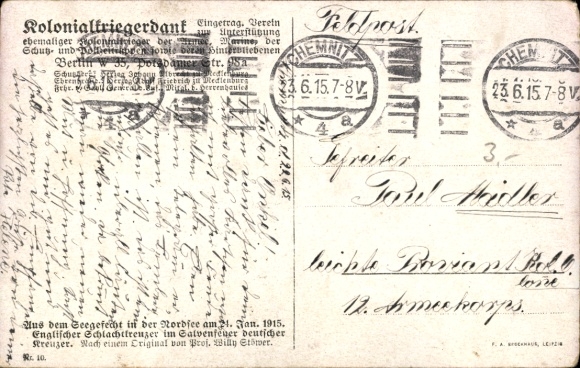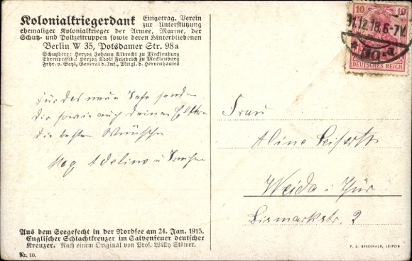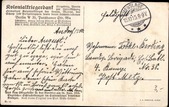 Zustand, siehe Scan, gelaufen, 1915 - ca 14 cm X 9 cm