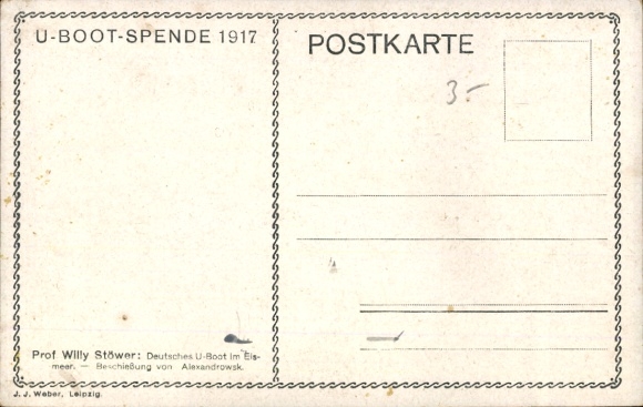 Künstler Ak Willy Stöwer, Deutsches U Boot im Eismeer, Beschießung von Alexandrowsk, U Boot Spende