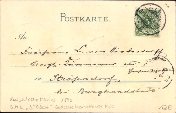 Künstler Litho Bohrdt, Hans, Segelschulschiff Stosch Rio de Janeiro verlassend