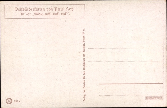 Lied Künstler Ak Hey, Paul, Volksliedkarte Nr 67, Mädle ruck an meine grüne Seite
