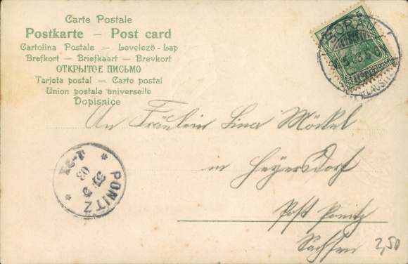 Präge Litho Glückwunsch Pfingsten, Mädchen, Glücksfee, Kirschen, Obstbaum