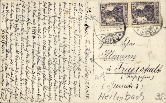 Foto Ak Heilenbach in der Eifel, Familie vor einem Wohnhaus