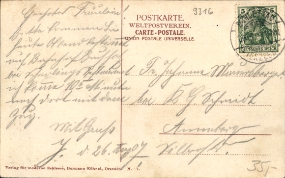 Zustand, siehe Scan, gelaufen, 1907 - ca 14 cm X 9 cm