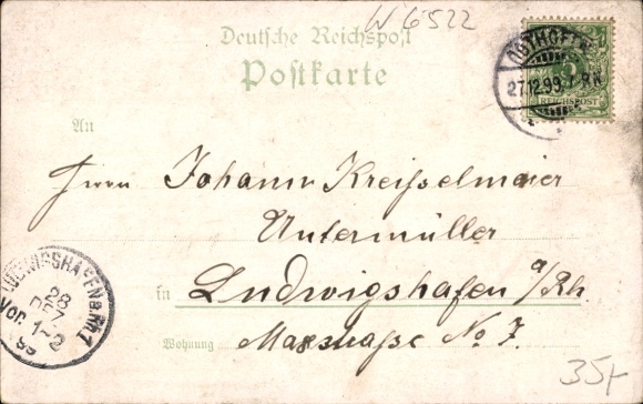 Zustand, siehe Scan, gelaufen, 1899 - ca 15 cm X 9 cm
