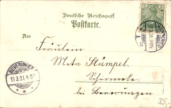 Zustand, siehe Scan, gelaufen, 1901 - ca 14 cm X 9 cm