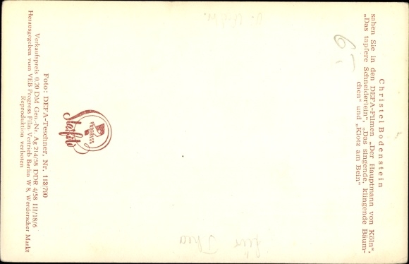 Ak Schauspielerin Christel Bodenstein, Portrait, DEFA Film, Autogramm