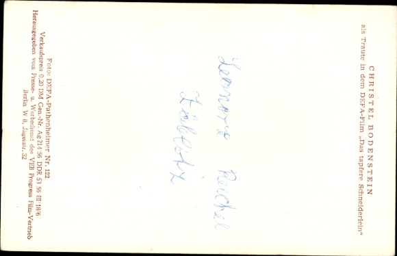Ak Schauspielerin Christel Bodenstein, DEFA, Das tapfere Schneiderlein, Portrait, Autogramm