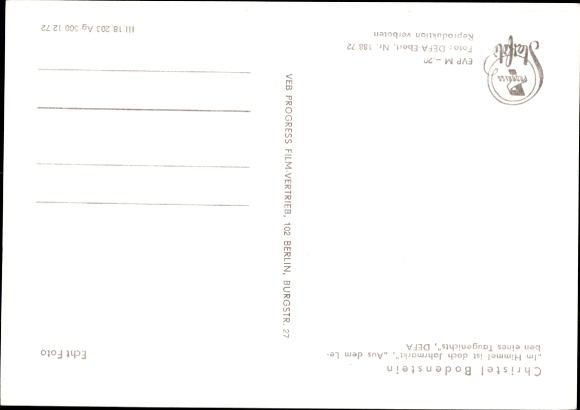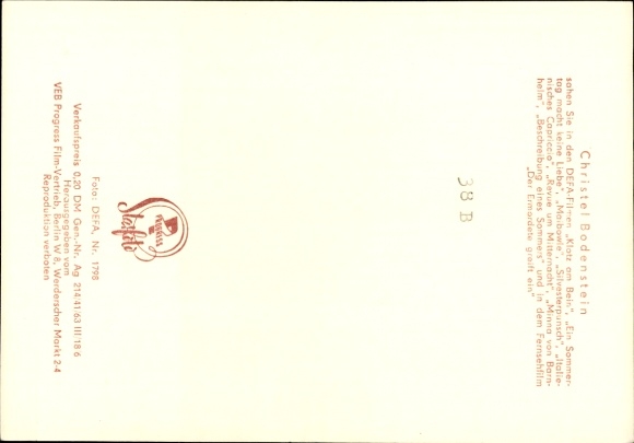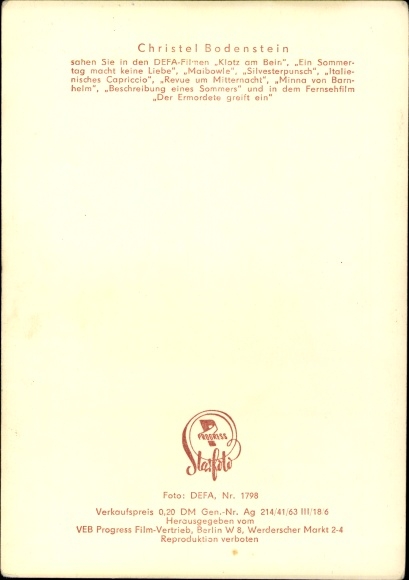 Ak Schauspielerin Christel Bodenstein, Portrait, Beschreibung eines Sommers, DEFA