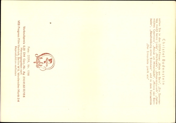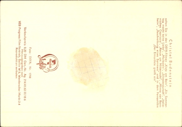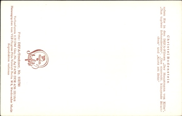Ak Schauspielerin Christel Bodenstein, Portrait, DEFA Film