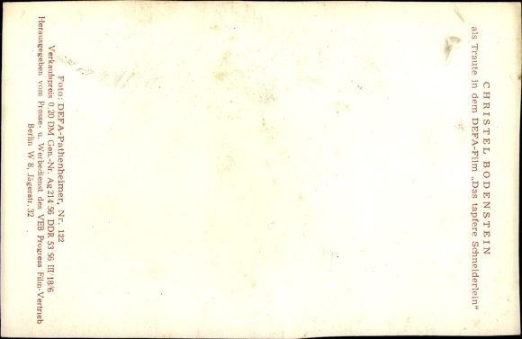 Ak Schauspielerin Christel Bodenstein, DEFA, Das tapfere Schneiderlein, Portrait