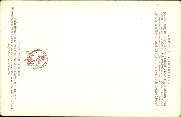 Ak Schauspielerin Christel Bodenstein, Portrait, Progress Starfoto