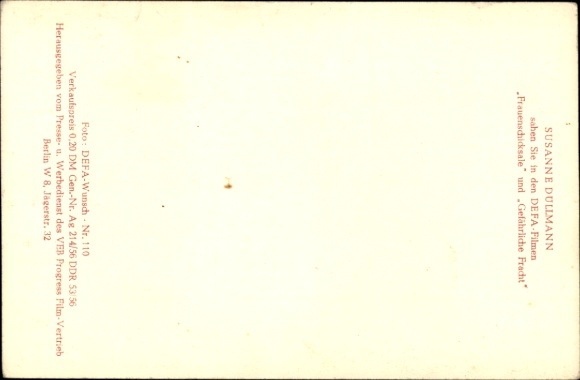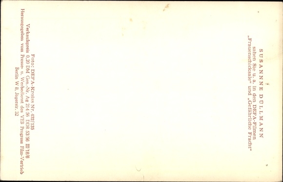 Ak Schauspielerin Susanne Düllmann, Frauenschicksale, Gefährliche Fracht, DEFA