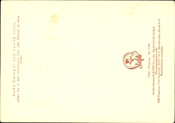 Ak Schauspielerin Anda Caropol, Schauspieler Vasile Ichim, Der Himmel ist ohne Gitter