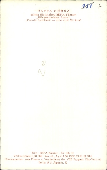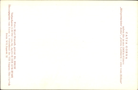Ak Schauspielerin Catja Görna, DEFA, Carola Lamberti eine vom Zirkus, Portrait
