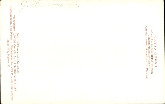 Ak Schauspielerin Catja Görna, Bürgermeister Anna, Carola Lamberti, DEFA, Portrait