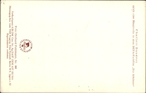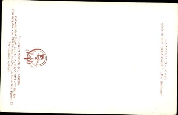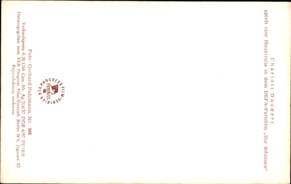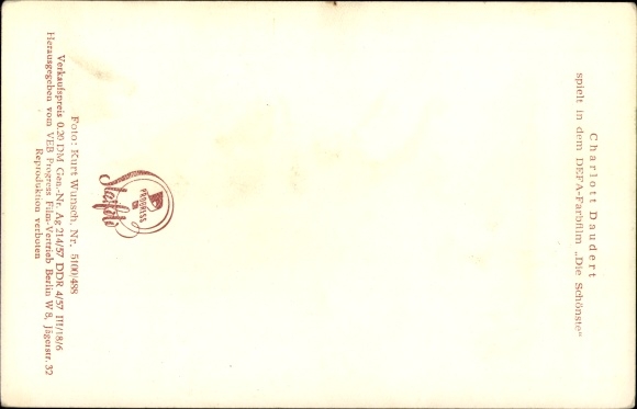Ak Schauspielerin Charlott Daudert, Portrait, Defa Film, Die Schönste