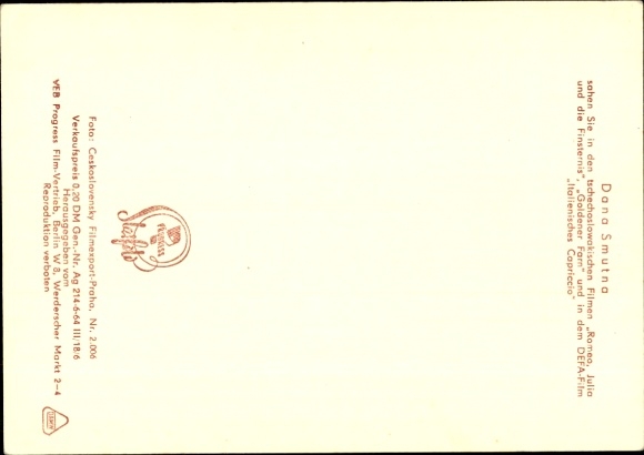 Ak Schauspielerin Dana Smutna, Italienisches Capriccio, Goldener Farn, DEFA