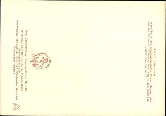 Ak Schauspielerin Dana Smutna, Filme Romeo, Julia und die Finsternis, Italienisches Capriccio