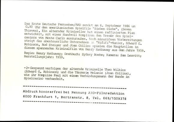 Pressefoto Filmszene, Sieben Diebe, Edward G. Robinson, Joan Collins