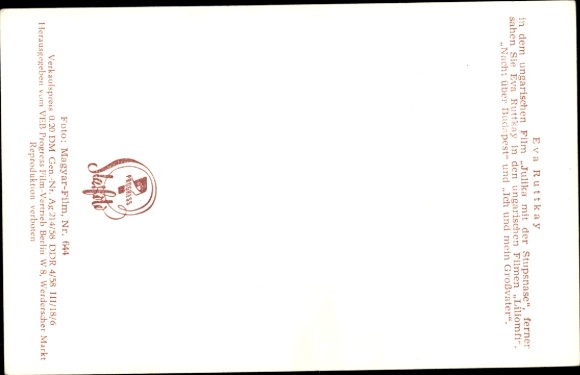 Ak Schauspielerin Eva Ruttkay, Julika mit der Stupsnase, Nacht über Budapest
