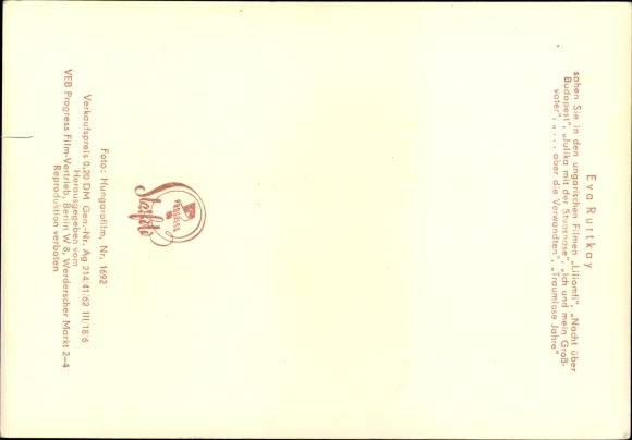 Ak Schauspielerin Eva Ruttkay, Liliomfi, Nacht über Budapest, Traumlose Jahre, Portrait