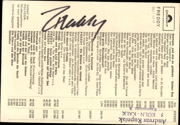 Ak Sänger Freddy, Freddy Quinn, Portrait, Autogramm