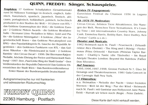 Ak Sänger Freddy Quinn, Portrait, Autogramm