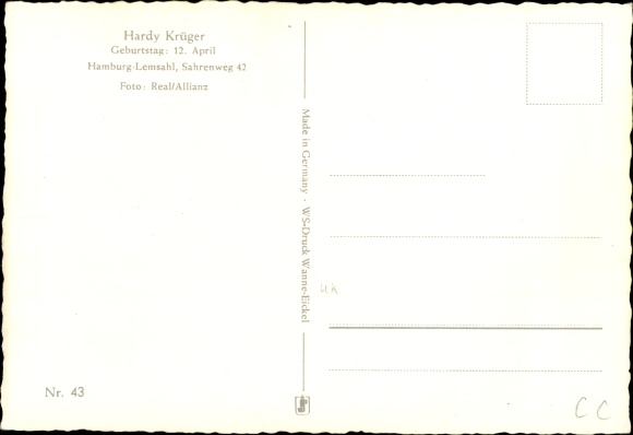 Ak Schauspieler Hardy Krüger, Portrait, Autogramm