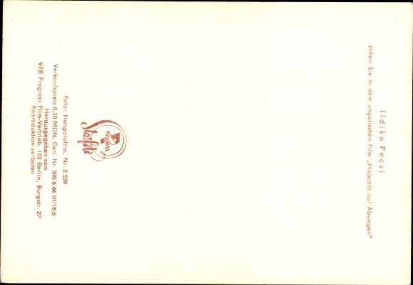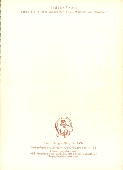 Ak Schauspielerin Ildiko Pecsi, Majestät auf Abwegen, Portrait