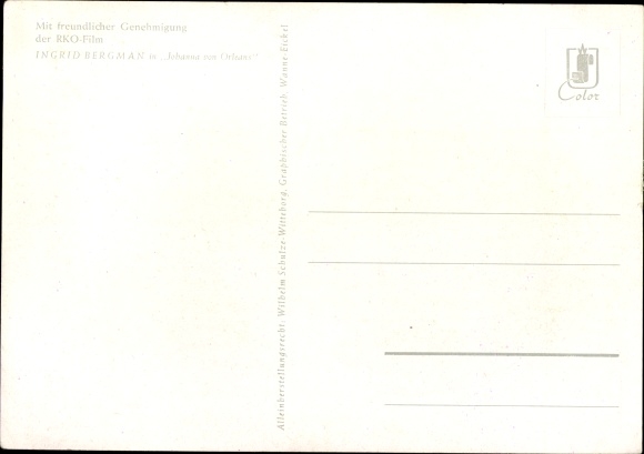 Ak Schauspielerin Ingrid Bergmann, Portrait, Film Johanna von Orleans