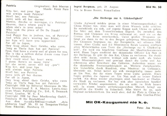 Sammelbild Schauspielerin Ingrid Bergmann, Portrait, Die Herberge zur 6. Glückseligkeit