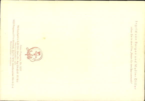 Ak Schauspieler Ingrid van Bergen und Walter Giller, Portrait, Rosen für den Staatsanwalt