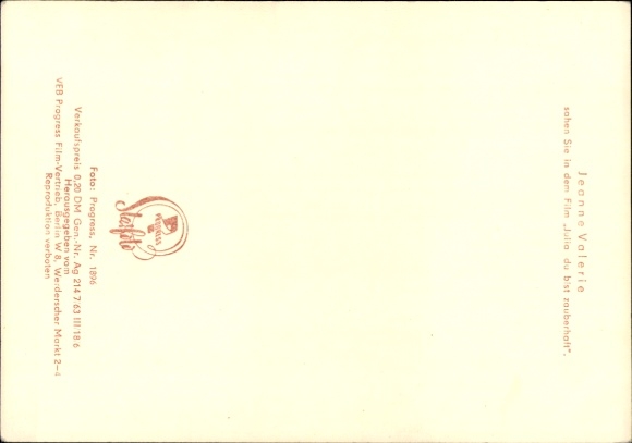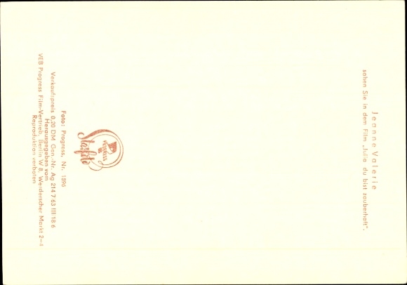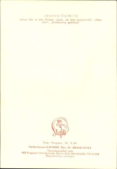 Ak Schauspielerin Jeanne Valerie, Film Julia, du bist zauberhaft, Portrait