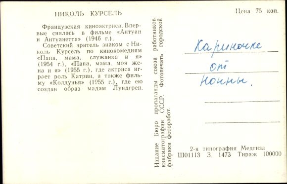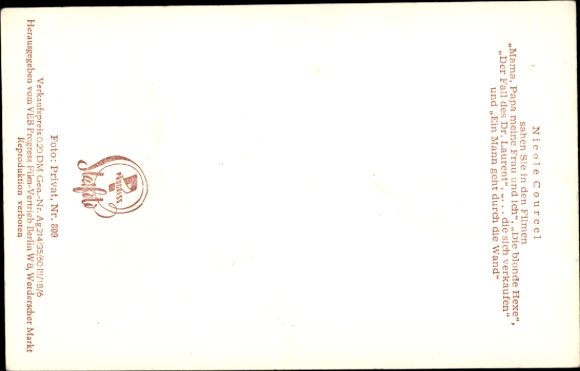 Ak Schauspielerin Nicole Courcel, Portrait, Autogramm