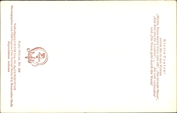 Ak Schauspielerin Nicole Courcel, Portrait, Film Die blonde Hexe