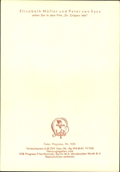 Ak Schauspielerin Elisabeth Müller, Schauspieler Peter van Eyck, Dr. Crippen lebt