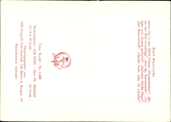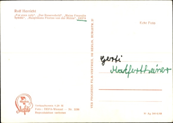 Ak Schauspieler Rolf Herricht, For eyes only, Der Reserveheld, DEFA
