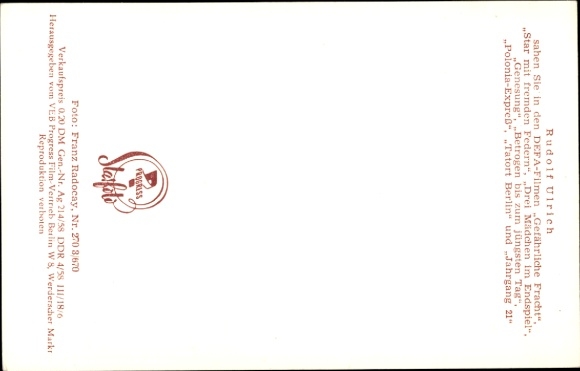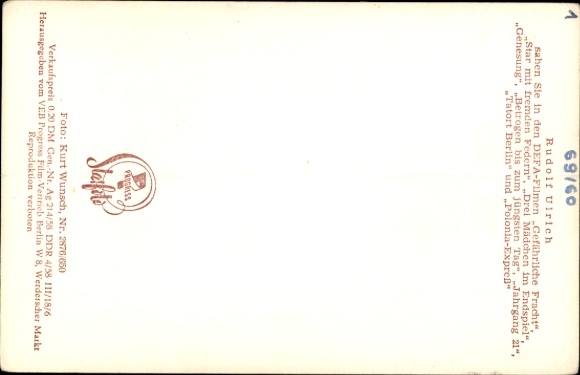 Ak Schauspieler Rudolf Ulrich, Portrait, DEFA Film, Kapitäne bleiben an Bord, Gefährliche Fracht