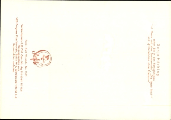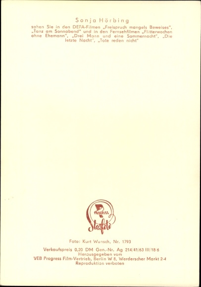 Ak Schauspielerin Sonja Hörbing, Freispruch mangels Beweises, Defa Film
