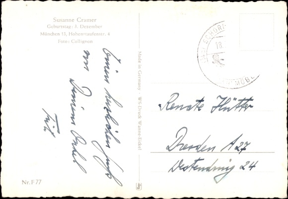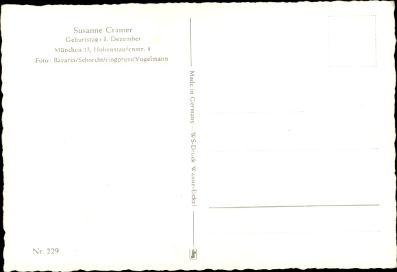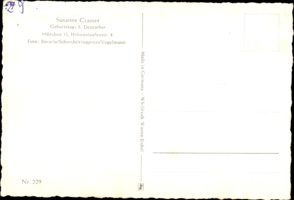 Ak Schauspielerin Susanne Cramer, Portrait, Autogramm