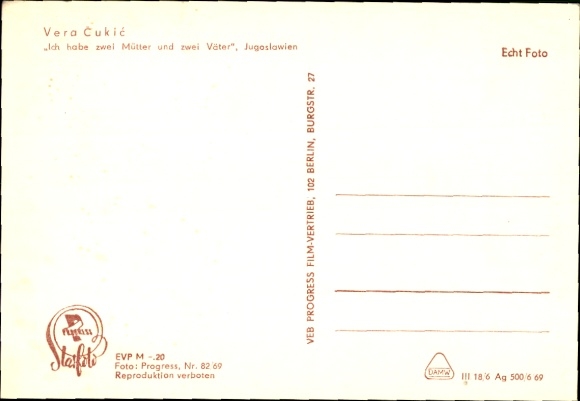 Ak Schauspieler Vera Cukic, Portrait, Ich habe zwei Mütter und zwei Väter