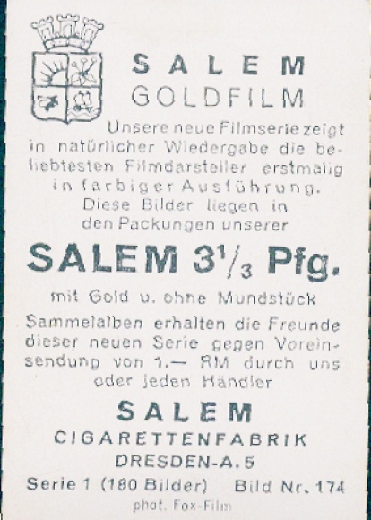 Sammelbild Salem Goldfilm, Bild Nr. 174, Schauspieler Warner Baxter